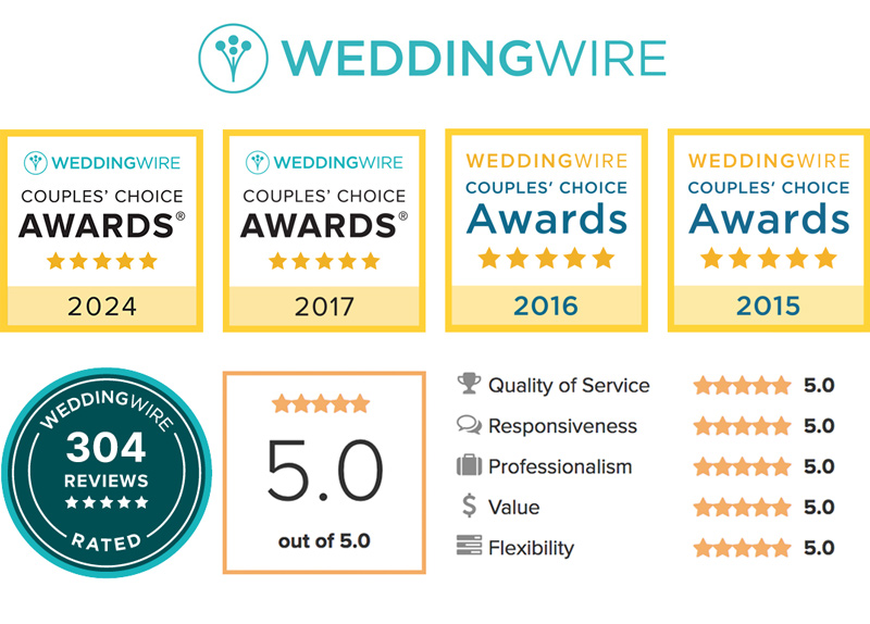 We are honored and delighted to announce that we have been awarded WeddingWire’s Couple’s Choice Awards for seven years. This prestigious recognition reflects our unwavering commitment to excellence and the trust that countless couples have placed in us to make their special day unforgettable. We extend our deepest gratitude to all our clients for their heartfelt reviews and continuous support. Your joy and satisfaction are the driving forces behind our dedication, and we look forward to creating many more cherished memories in the years to come.